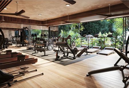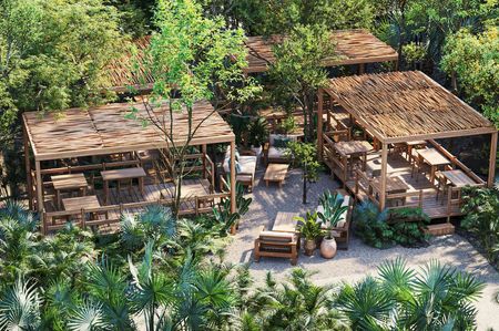 con estaciones de entrenamiento muy orgánicas y funcionales. Pet park, * meditación, jungle office,donde podrás trabajar al aire libre, nature kitchen, un espacio de cocina rústica, abierta a la naturaleza. Childrens park, juegos que conectan con la naturaleza.